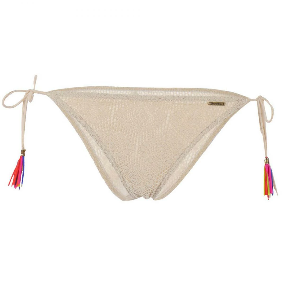 Cette culotte entièrement de couleur sable est faite d’un lycra sable satiné, doux, léger rehaussé d’un crochet élastique dont le motif très original est un Å“il.