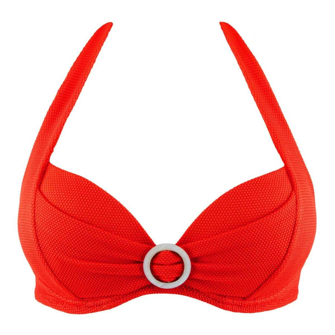 Pour un rendu plus sexy, portez ce haut de maillot de bain coques moulées plongeant orange d’Aubade Maillots avec le bas assorti.