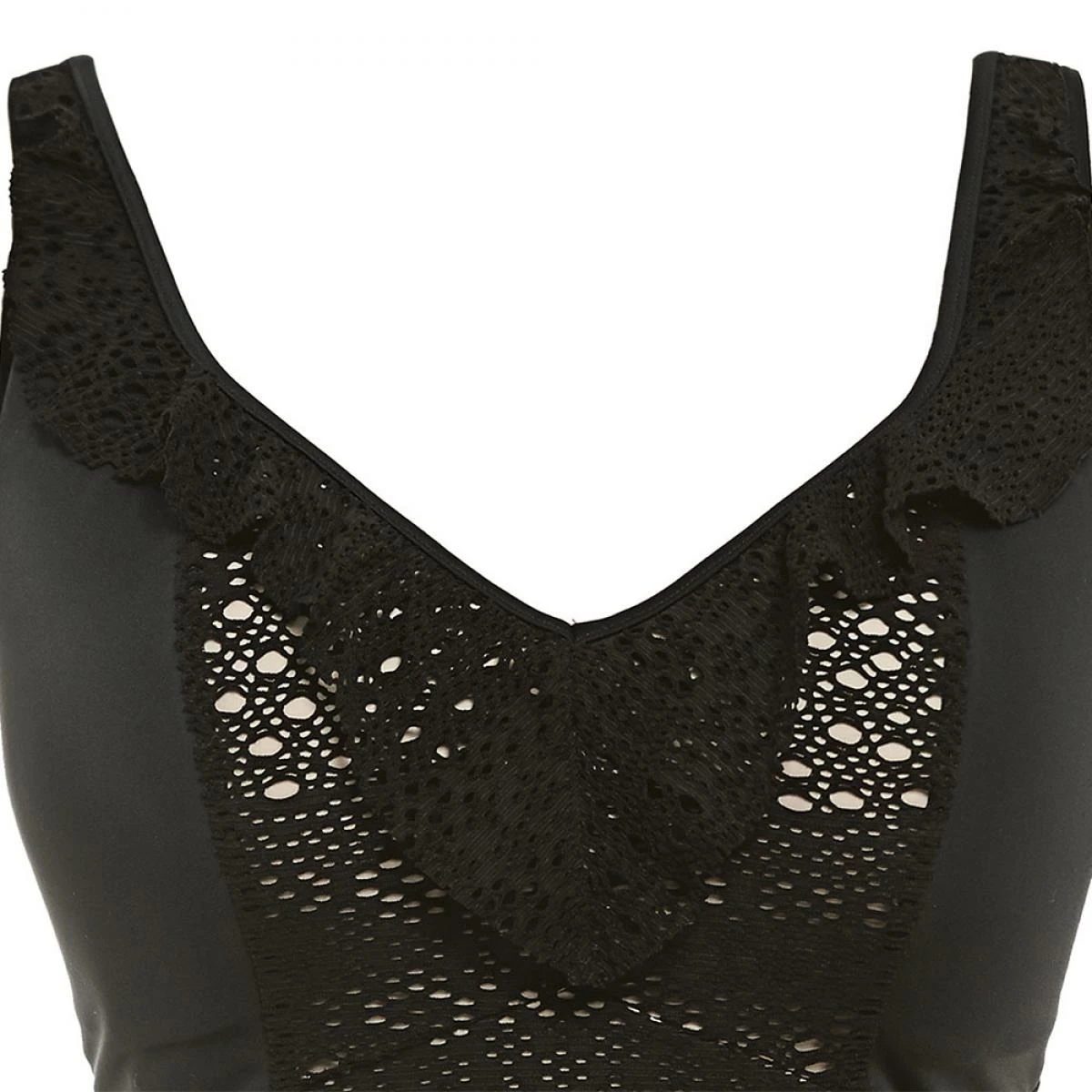 Cette pièce est conçue dans un tissu gainant pour vous offrir une silhouette affinée et sculptée. L’avant possède un panneau doublé pour éviter qu’il soit totalement transparent. Les cotés ainsi que l’arrière sont en maille extensible. Le volant sur le décolleté accentue le charme de ce maillot. Sans armatures, les bonnets vous offrent beaucoup de confort et un galbe naturel.