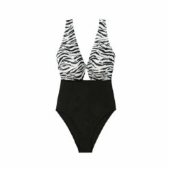 La maille noire utilisée est douce et confortable et joue un subtil jeu de drapage sur l’avant afin de faire de ce maillot de bain à première vue assez simple, un magnifique pièce tendance !